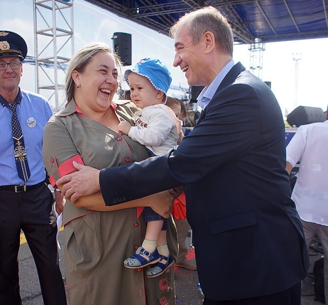Посетил праздник и Губернатор Иркутской области Сергей Левченко, он обратился со словами поздравления к работникам и ветеранам воздушного флота Приангарья.
