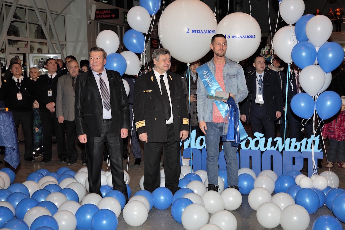 Двухмиллионным стал пассажир рейса авиакомпании «ИрАэро». Молодой человек рассказал, что его зовут Максим и вместе со своей девушкой он летит на новогодние каникулы в Санкт-Петербург.